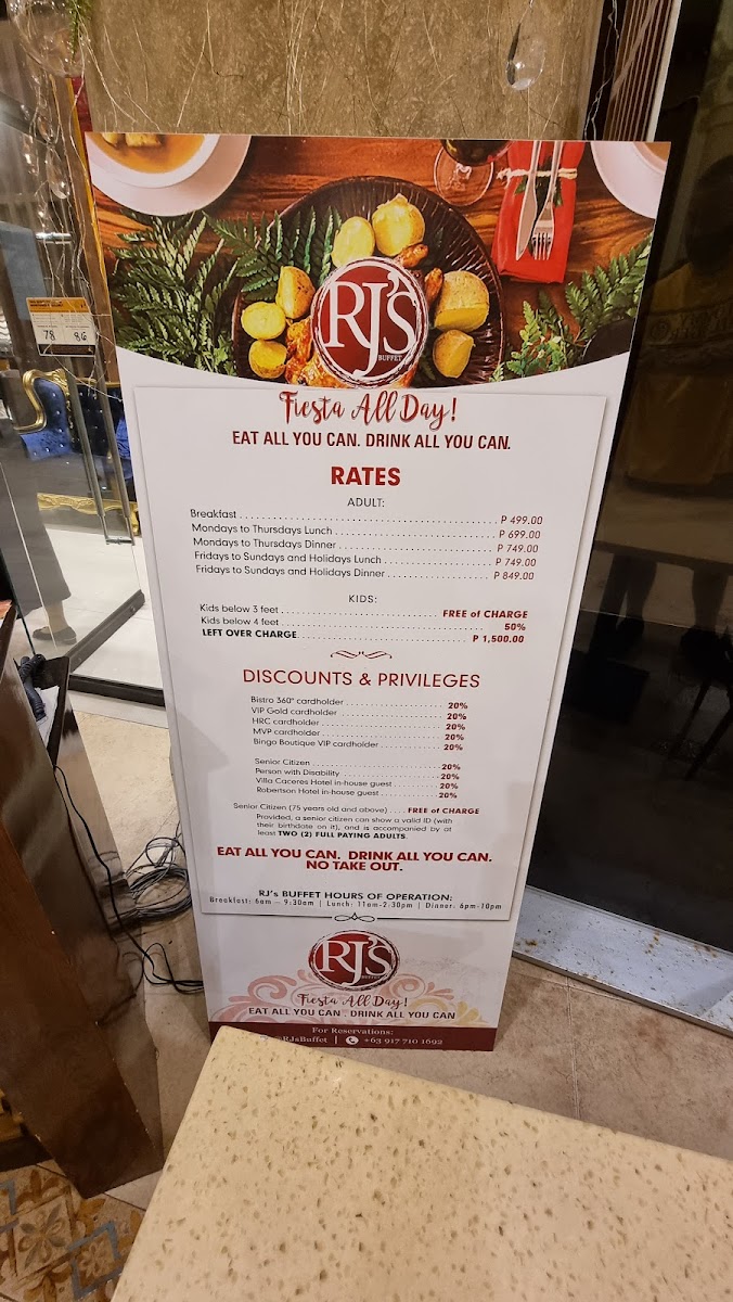 For more information or to make a reservation, you can reach RJ’s Buffet at +63 917 710 1692.